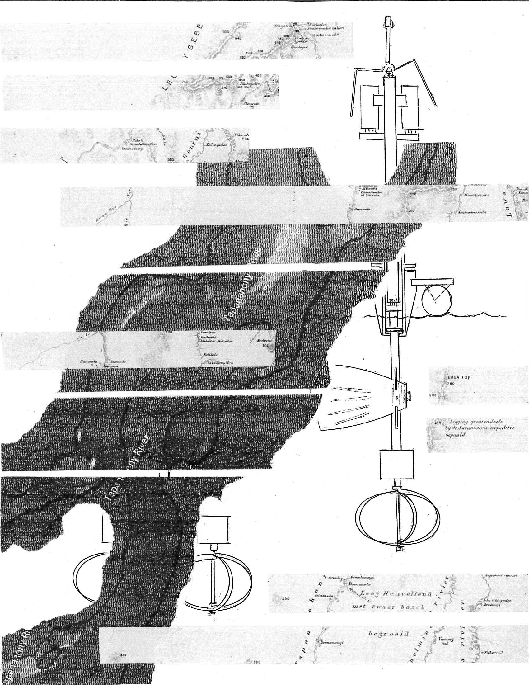 The base sleeve is powered by two tri-blade (vertical axis) Darrieus hydrokinetic turbines, which are activated by the flow of the water and whose orientation relative to that flow is adjusted for maximum harvesting by a fixed rudder-like fin mounted on their single rigid hanging armature.